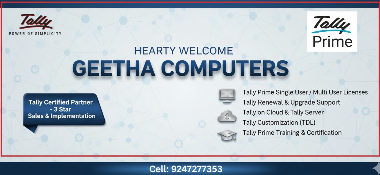 Ready to enhance your business with Tally software? Contact Geetha Computers today to explore our wide range of Tally solutions and services.